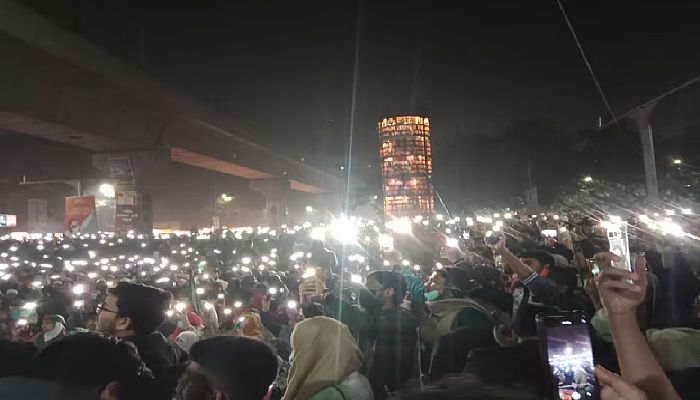 হাড়কাঁপানো শীত উপেক্ষা করে শাহবাগ মোড়ে ইনকিলাব মঞ্চের নেতা-কর্মীদের অবস্থান। ছবি: সংগৃহীত