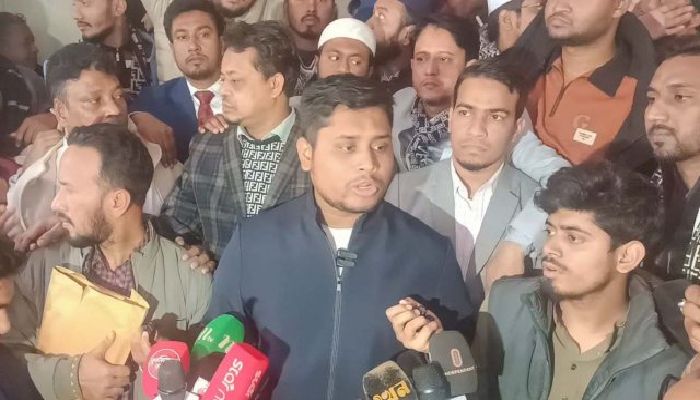 কুমিল্লা জেলা রিটার্নিং কর্মকর্তার কার্যালয়ে মনোনয়নপত্র যাচাই-বাছাই শেষে সাংবাদিকদের ব্রিফ করছেন হাসনাত আবদুল্লাহ। ছবি: সংগৃহীত