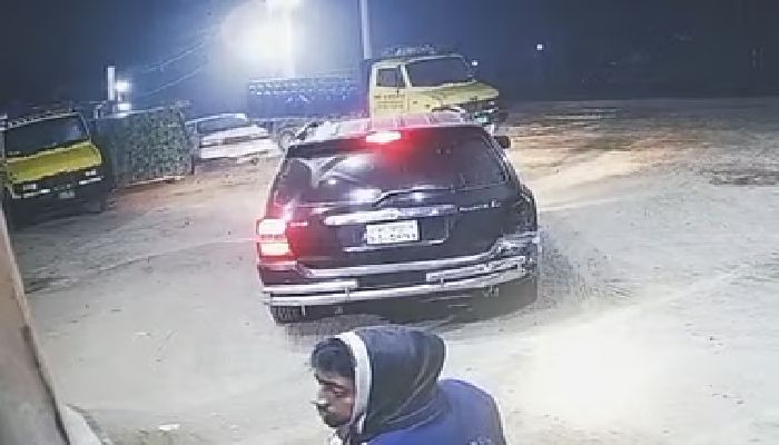 তেলের টাকা না দিয়ে শ্রমিক রিপন সাহাকে চাপা দিয়ে পালাচ্ছে ল্যান্ড ক্রুজারটি। শুক্রবার ভোরে রাজবাড়ীর করিম ফিলিং স্টেশনের সিসিটিভি ফুটেজ থেকে নেওয়া।