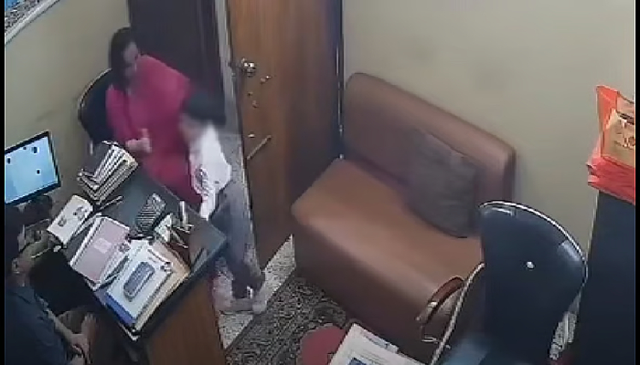শারমিন একাডেমির অফিস কক্ষে শিশুটিকে আটকে রেখে নির্যাতন চালাচ্ছেন প্রধান শিক্ষক ও ব্যবস্থাপক। সিসিটিভি ফুটেজ