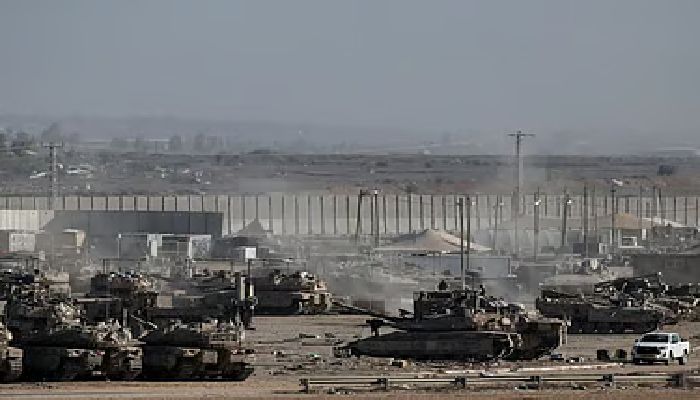 ইসরায়েল সরকার হামাসের সঙ্গে যুদ্ধবিরতির প্রথম ধাপ অনুমোদন করার পর সামরিক যানের পাশে দাঁড়িয়ে আছেন ইসরায়েলি সেনারা। ১০ অক্টোবর, ২০২৫।ছবি: রয়টার্স
