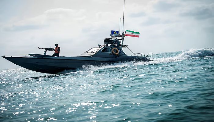 হরমুজ প্রণালিতে টহলরত আইআরজিসির একটি দ্রুতগামী নৌযান। ছবি: আইআরজিসি