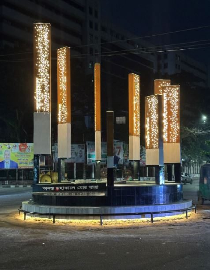 রাজধানীর পলাশী গোলচত্বরে নির্মিত হয়েছে শহীদ আবরার ফাহাদের স্মৃতি ও আদর্শে গড়া ‘আগ্রাসনবিরোধী আট স্তম্ভ’।