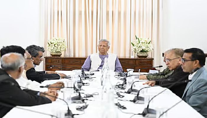 সোমবার বিকেলে রাষ্ট্রীয় অতিথি ভবন যমুনায় জাতীয় ঐকমত্য কমিশনের সমাপনী বৈঠকে সভাপতিত্ব করেন প্রধান উপদেষ্টা অধ্যাপক মুহাম্মদ ইউনূস। ছবি: সংগৃহীত