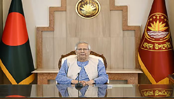 জাতির উদ্দেশে দেওয়া ভাষণে জাতীয় নির্বাচন ও গণভোট একই দিনে অনুষ্ঠানের ঘোষণা দিচ্ছেন প্রধান উপদেষ্টা অধ্যাপক মুহাম্মদ ইউনূস। ছবি: সংগৃহীত