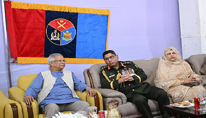 অনুষ্ঠানের প্রধান অতিথি হিসেবে অধ্যাপক মুহাম্মদ ইউনূস সশস্ত্র বাহিনীর প্রতি গভীর শ্রদ্ধা জানান। তাঁর বক্তব্যে তিনি বলেন: