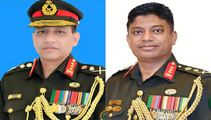 কিউএমজি হিসেবে মনোনীত লেফটেন্যান্ট জেনারেল মোহাম্মদ শাহীনুল হক (বামে) এবং এনডিসি কমান্ড্যান্ট হিসেবে দায়িত্বপ্রাপ্ত লেফটেন্যান্ট জেনারেল মো. ফয়জুর রহমান (ডানে)। ছবি: কোলাজ