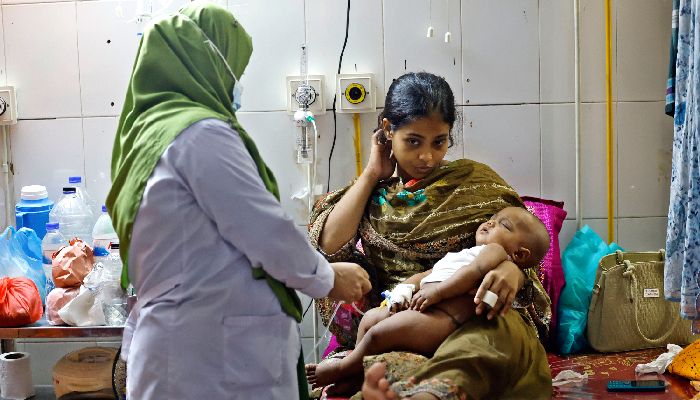হাসপাতালের বিশেষায়িত ওয়ার্ডে হামে আক্রান্ত এক শিশুকে সেবা দিচ্ছেন নার্স। ১৩ এপ্রিল, ২০২৬। ফাইল ছবি