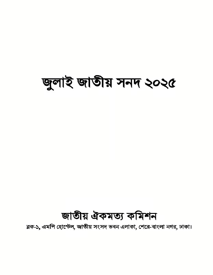 শুক্রবার (১৭ অক্টোবর) বিকেলে জাতীয় সংসদ ভবনের দক্ষিণ প্লাজায় এক জমকালো অনুষ্ঠানের মাধ্যমে জুলাই জাতীয় সনদ ২০২৫-এ স্বাক্ষর করেন জাতীয় ঐকমত্য কমিশনের সভাপতি ও প্রধান উপদেষ্টা অধ্যাপক মুহাম্মদ ইউনূস, কমিশনের অন্যান্য সদস্য এবং মোট ২৪টি রাজনৈতিক দলের নেতারা। সংস্কারের লক্ষ্যে দীর্ঘ আলোচনার মধ্য দিয়ে প্রণীত এই জুলাই জাতীয় সনদ হুবহু নিচে তুলে ধরা হলো—